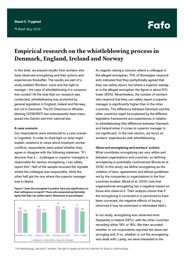 Empirical research on the whistleblowing process in Denmark, England, Ireland and Norway