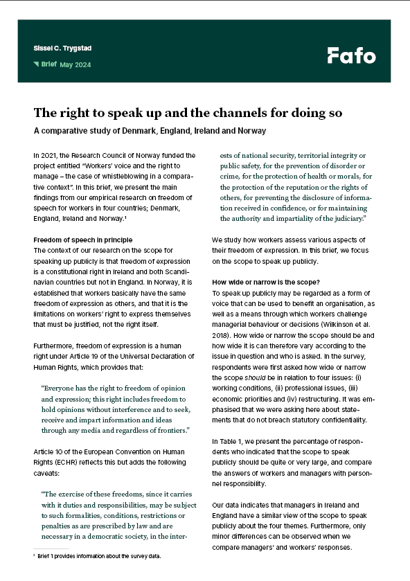 Workers' voice and the right to manage - the case of whistleblowing in a comparative context