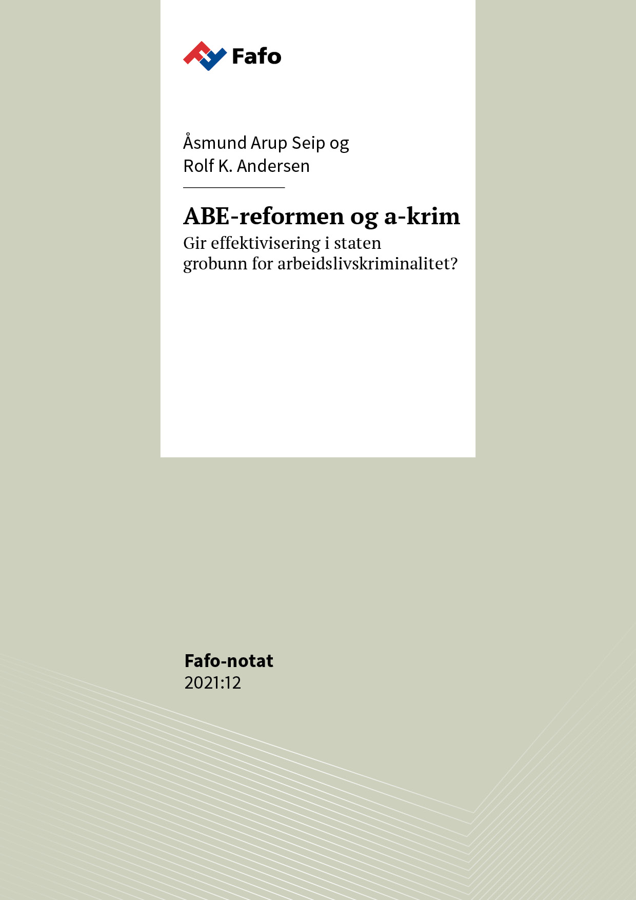 De siste tiårene har det skjedd store endringer i arbeidslivet med en betydelig arbeidsinnvandring, etablering av bemanningsselskaper og utenlandske oppdragstakere. Dette har gitt kriminelle større spillerom. Denne rapporten ser på sammenhengen mellom to reformer som berører fire statlige etater. ABE-reformen har siden 2015 vært et virkemiddel i regjeringens arbeid for å effektivisere og avbyråkratisere offentlig sektor gjennom budsjettkutt. Samtidig har regjeringen lansert en strategi til bekjempelse av arbeidslivskriminalitet. Rapporten viser at ABE-reformen kan ha bidratt til at arbeidet mot arbeidslivskriminalitet har blitt tilført betydelige midler. Samtidig kan ABE-kutt i etatene ha svekket etatenes samlede innsats og begrenset effekten av a-krimsatsingen.
