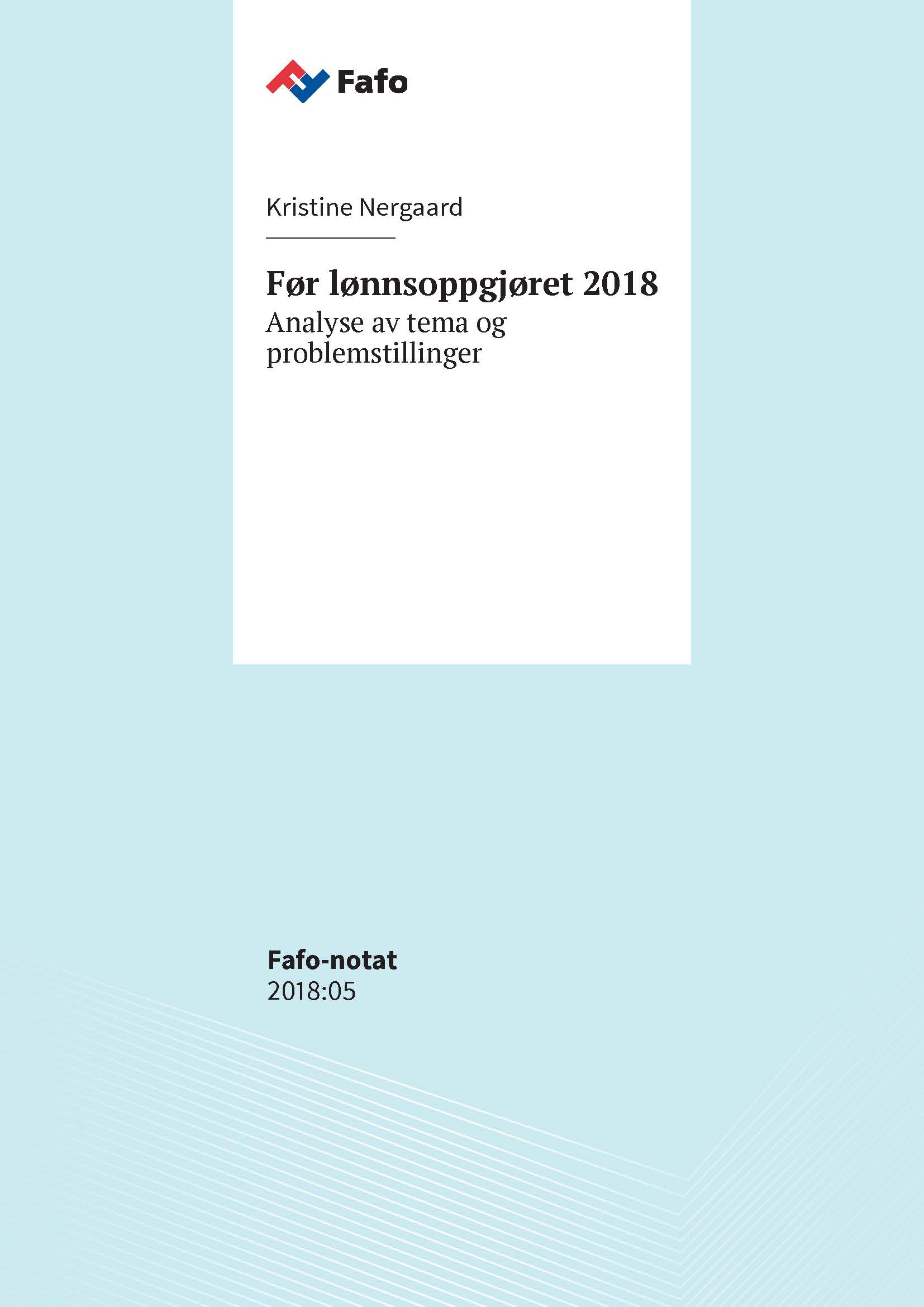 Dette notatet er en analyse av hvilke tema vi forventer vil stå på dagsordenen i lønnsoppgjøret 2018, og hvilke utfordringer partene vil møte i forhandlingene. Lønnsoppgjøret i 2018 er et hovedoppgjør, noe som innebærer at de aller fleste norske landsdekkende tariffavtalene skal reforhandles. Ulike pensjonsspørsmål vil være blant de mest krevende sakene i så vel privat som offentlig sektor. I tillegg skal partene bli enige om størrelsen på lønnstilleggene, de skal bli enige om lønnssystemet i staten, og partene i industrien skal finne en løsning på flere saker som direkte eller indirekte knytter an til lønns- og arbeidsvilkår for utenlandske arbeidstakere.