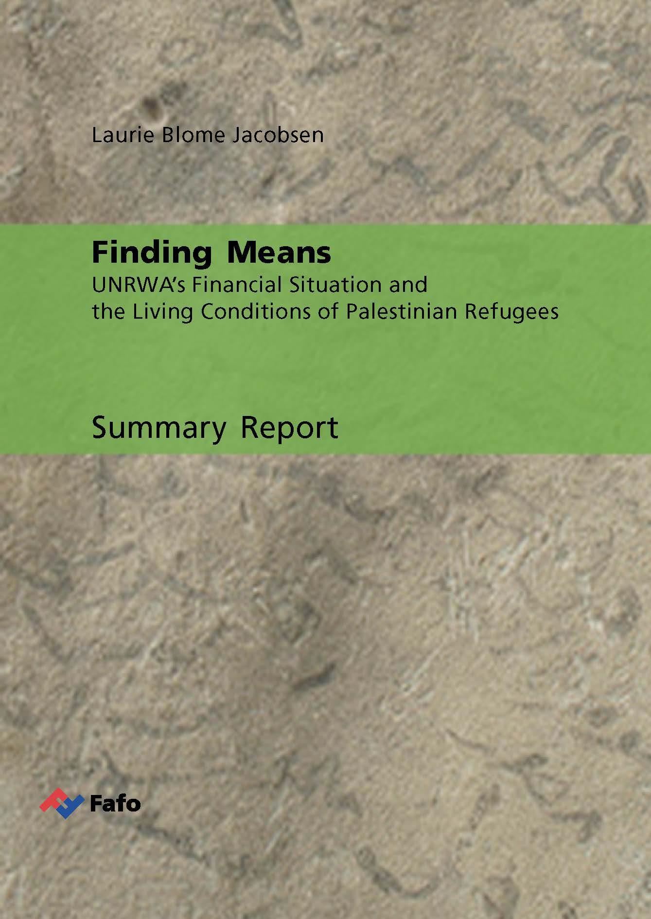 This summary report of Finding Means: UNRWA’s Financial Crisis and the Living Conditions among Palestinian Refugees brings together a wide range of analysis relevant for the policy debate on the present financial situation of UNRWA’s impact on Palestinian refugee living conditions, as well as future provision and financing of services. Topics covered include refugee living conditions, poverty and demographics, UNRWA services, and UNRWA budgetary and donor environment. The summary analysis is based upon three volumes of work completed for the project.