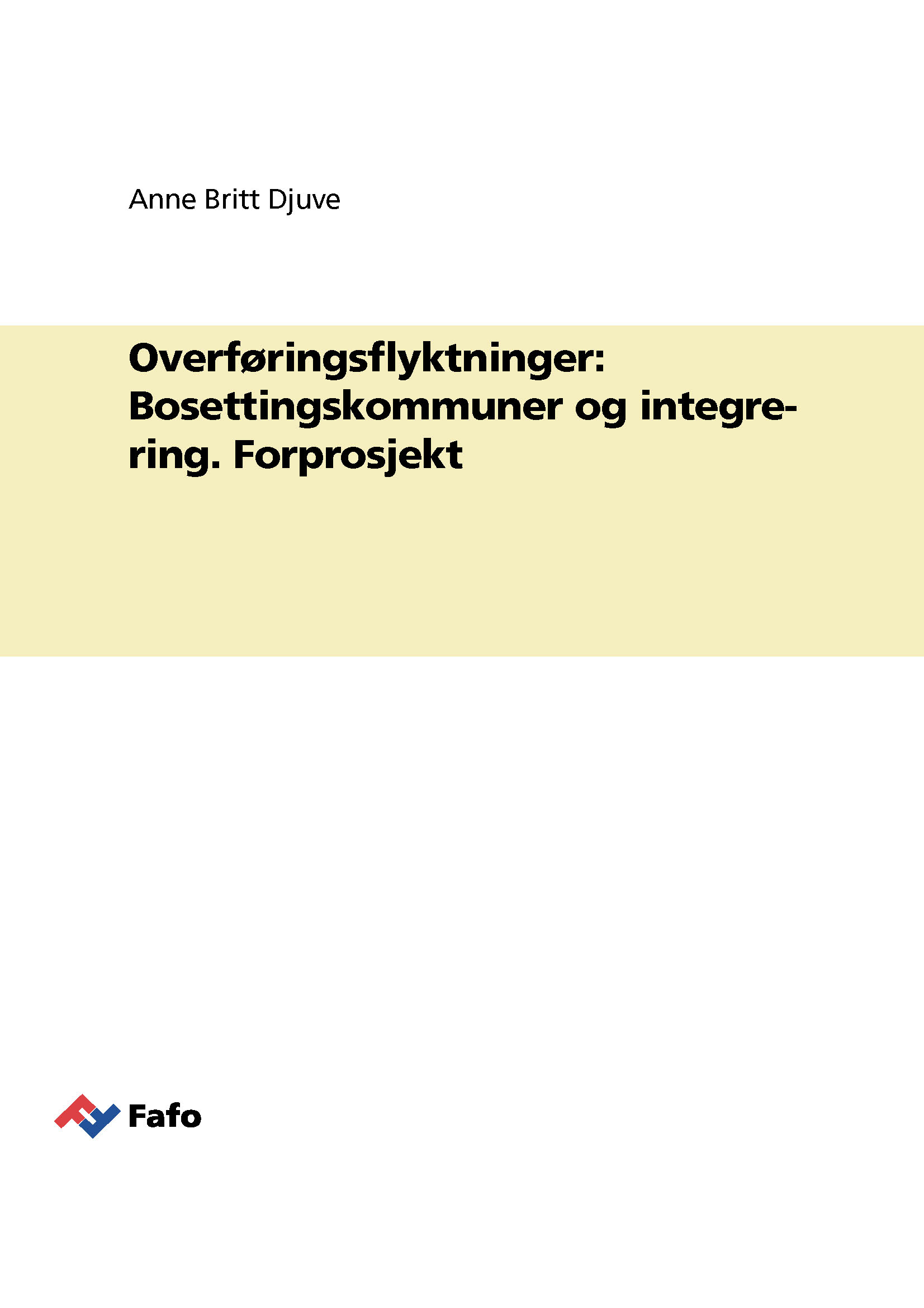 Dette notatet presenterer resultatene fra et forprosjekt om bosettingsmønster og integrering av overføringsflyktninger. Utgangspunktet for prosjektet var data som tyder på at overføringsflyktninger har en vanskeligere integreringskarriere enn andre flyktningekategorier, og at det derfor kan være grunn til å ta spesielle hensyn ved bosetting og integrering av disse. I forprosjektet er følgende problemstillinger belyst: Hva kjennetegner kommuner som bosetter overføringsflyktninger, sammenliknet med kommuner som bosetter andre flyktningekategorier? Er det forskjeller i kommunenes sentralitet, arbeidsledighetsnivå og erfaring med integreringsarbeid? Er det forskjeller i flyttemønstre mellom de ulike flyttekategoriene? Avslutningsvis er det også kort presentert data for yrkesdeltakelse og uføretrygding, for å gi en indikasjon på forskjeller i integreringsgrad etter flyktningestatus.