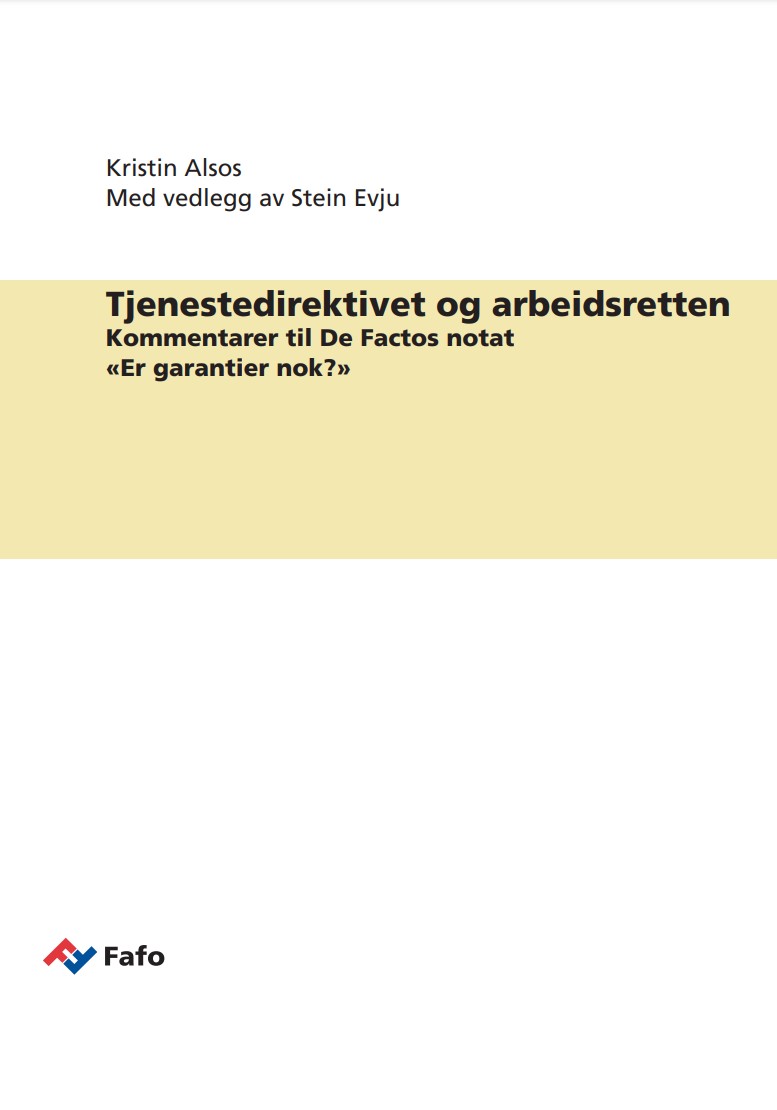 Vil tjenestedirektivet ha implikasjoner for norsk arbeidsliv, og bør Norge reservere seg mot at direktivet blir en del av EØS-avtalen? Dette er temaer som har vært debattert i norsk samfunnsliv de siste årene. I et notat fra januar 2009 «Er garantier nok?» fremsetter De Facto kritikk mot St.prp. nr. 34 (2008–2009) om tjenestedirektivet, og som en del av dette kritiseres de konklusjoner som fremkom i Fafo-notat 2008:05 «Tjenestedirektivet og regjeringens handlingsplan mot sosial dumping». Dette notatet tar utgangspunkt i og kommenterer den kritikken som fremføres av De Facto. Notatet er skrevet på oppdrag fra LO, og med bidrag fra professor Stein Evju, Institutt for privatrett, Universitetet i Oslo.