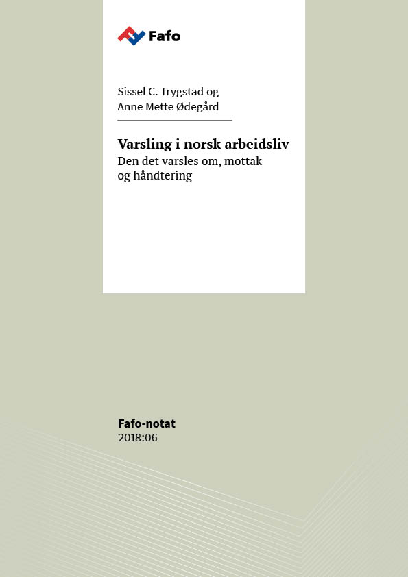 På oppdrag for Arbeids- og sosialdepartementet har Fafo undersøkt varslingsprosessen fra fire ulike vinkler. Hvordan oppleves det å bli utpekt som ansvarlig for kritikkverdige forhold, og hvilke reaksjoner blir man møtt med? Hvordan håndterer de som mottar varsler den utpekte ansvarlige og varsleren? Hvordan er det å være kolleger av den som varsler og den det varsles om, og sist, men ikke minst – hvordan er det å være varsler i Norge? Undersøkelsen baserer seg på en spørreundersøkelse gjennomført vinteren 2017 og 2018.
