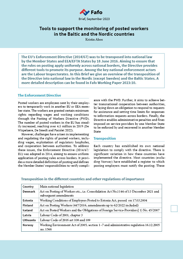 Tools to support the monitoring of posted workers in the Baltic and the Nordic countries
